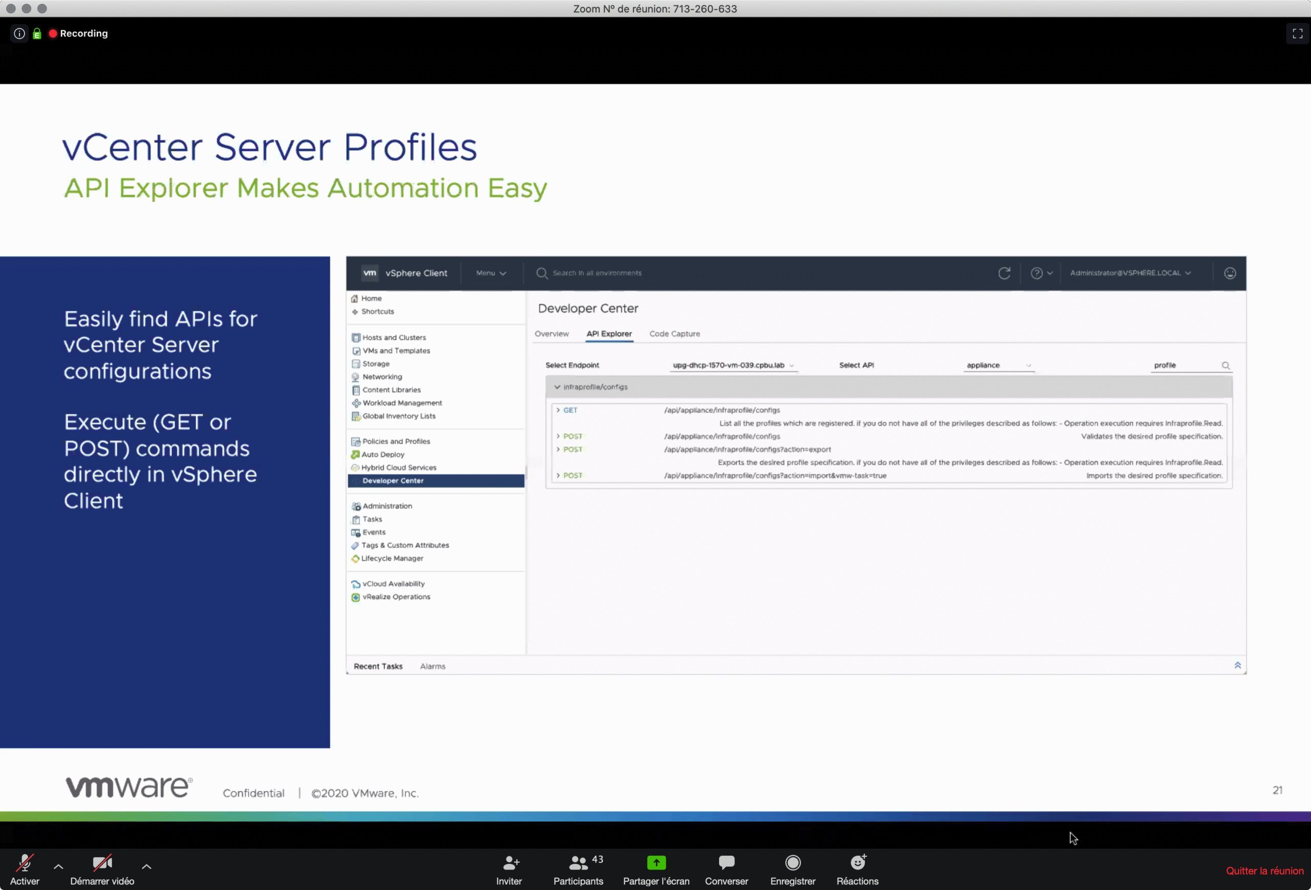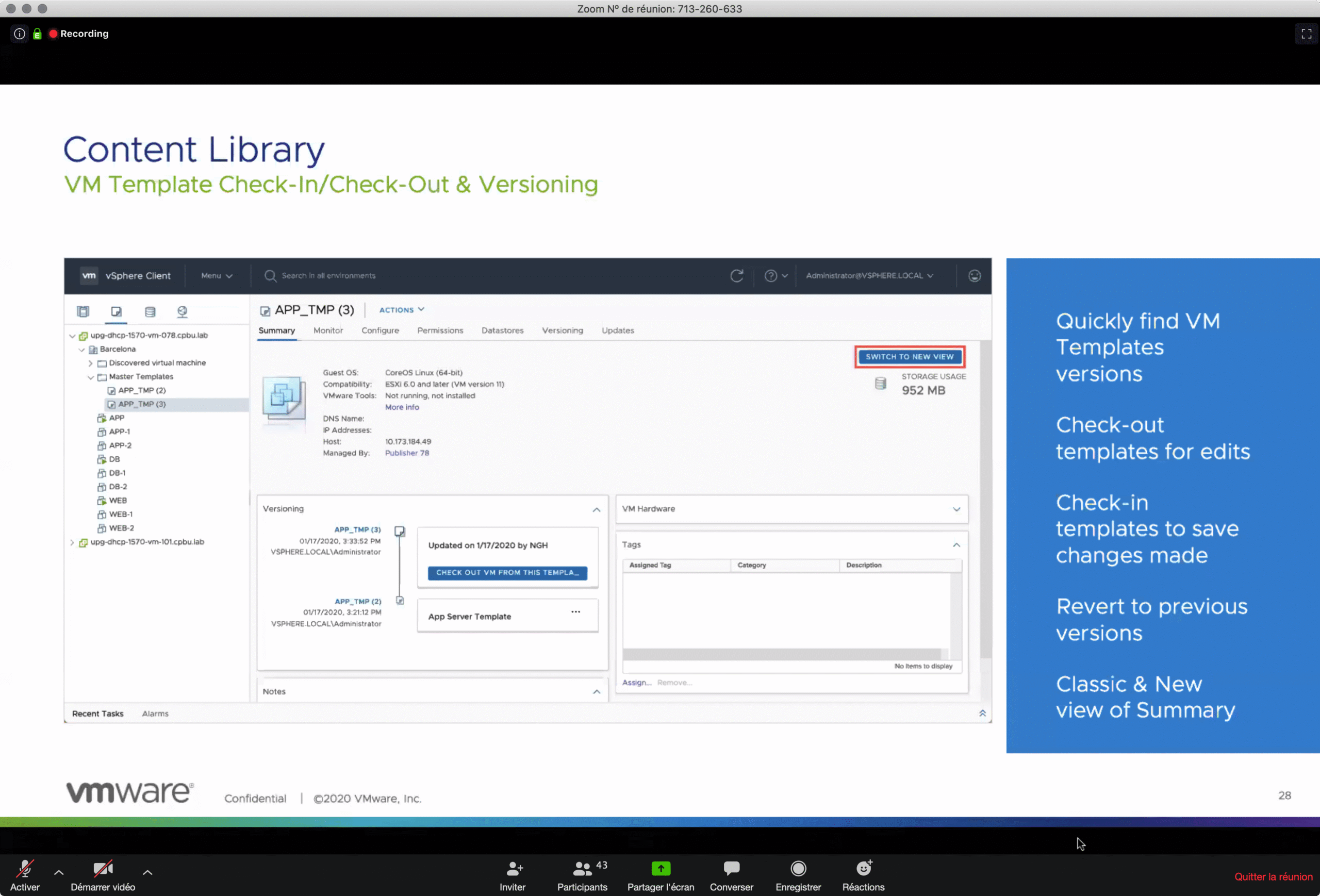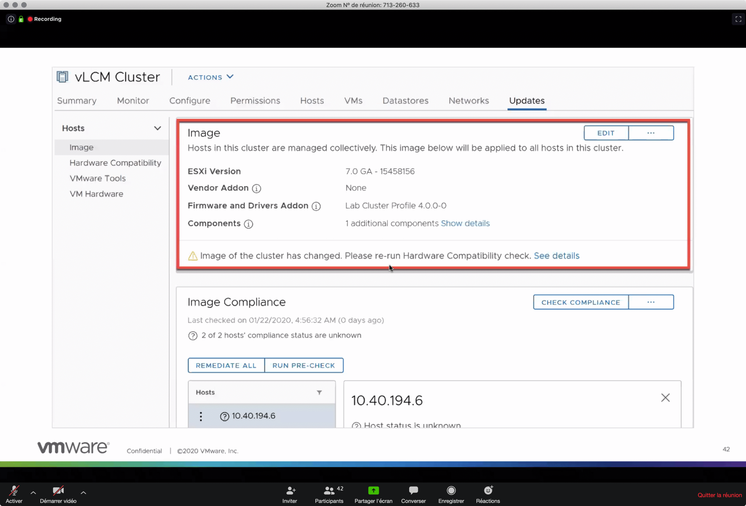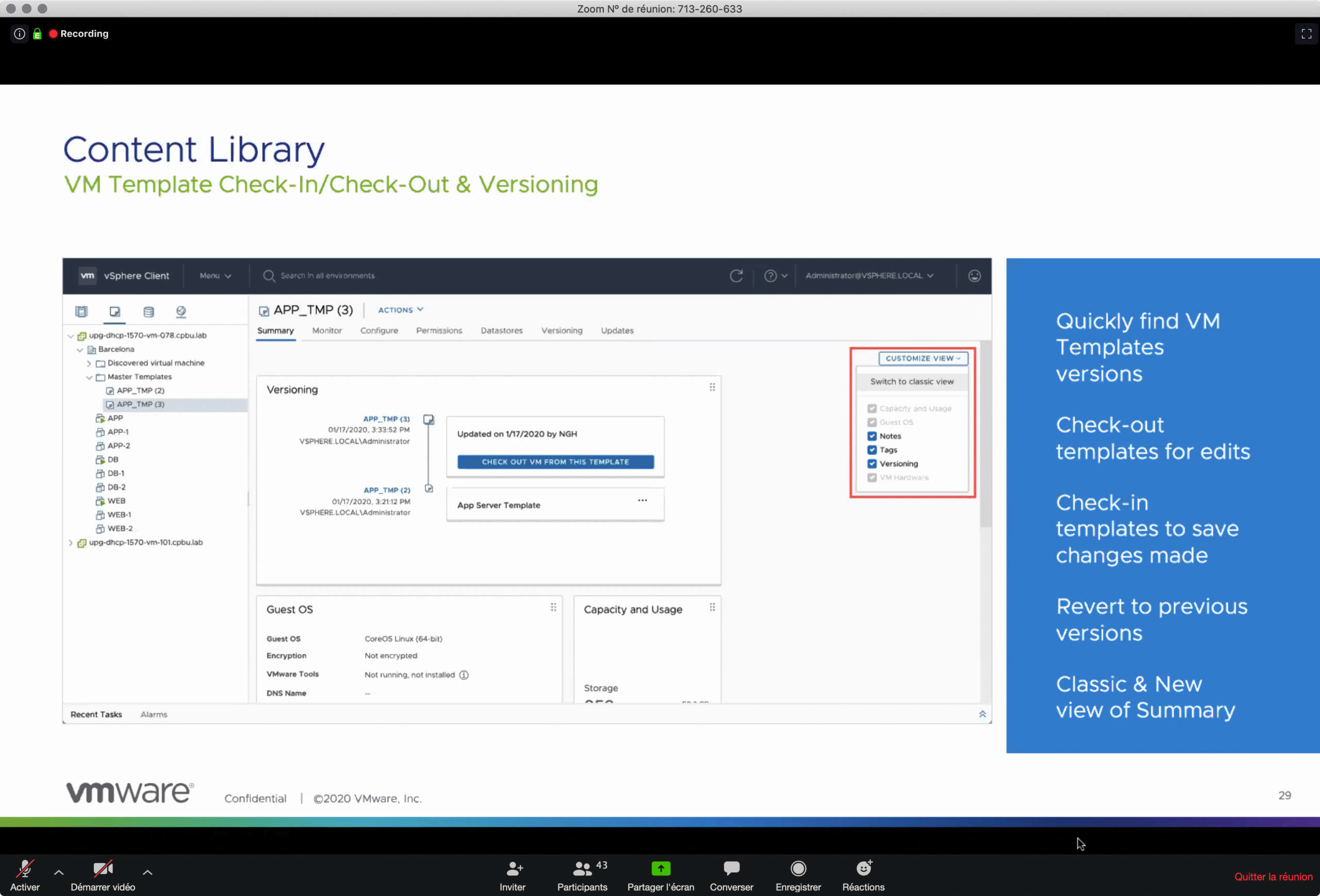 En introduction, sachez que les vExpert bloggers ont été invités à partir de la mi-février à toute une série de sessions présentant les différents aspects de vSphere 7, auxquelles j’ai pu participer en partie. Par rapport notre niveau de production, je me suis surtout concentré sur les nouveautés de vCenter et ESXi, évidemment, le noyau dur.