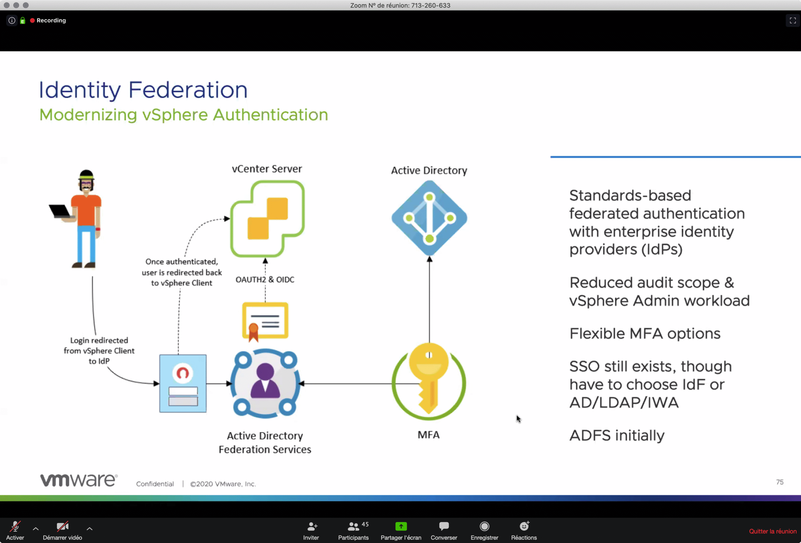Et pour terminer, vCenter est enfin capable de s’interfacer avec un Identiy Provider !!! C’était une fonction très attendue et depuis longtemps, elle est enfin là. Cerise sur le gâteau, l’authentification multi-facteur est aussi présente. Que du bon, donc, de ce point du vue.