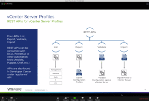 – vCenter Profile : un outil capable de générer, au même titre que les Host Profile, des profils globaux pour vCenter. Cela permet d’envisager une forme d’uniformisation et de gestion globale de la configuration pour des productions « multi-vCenter ».