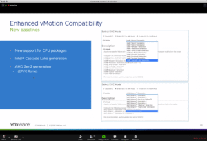 Enfin, vMotion propose aussi des modes EVC pour les dernières générations de processeurs Intel et AMD.